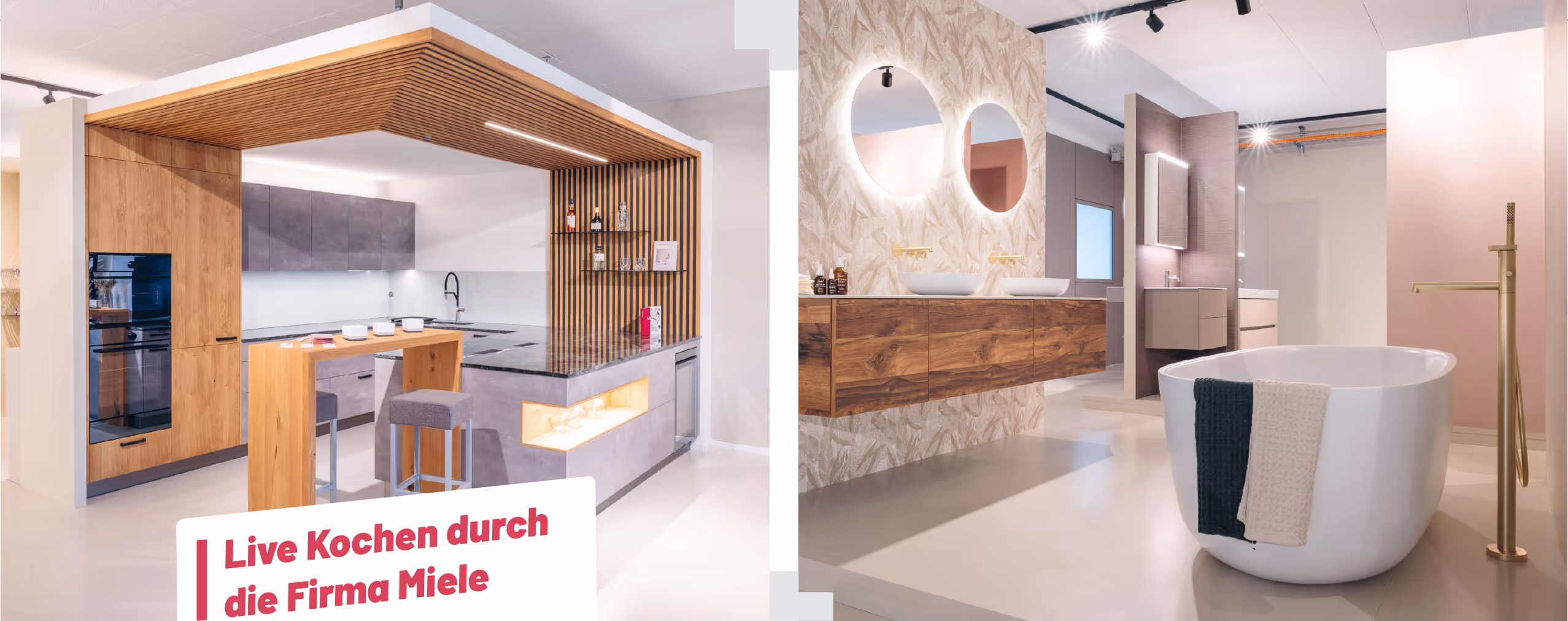 Ein besonderes Highlight bildet das Live-Kochen mit Geräten von Miele. Dabei wirdmoderne Küchentechnik im Einsatz gezeigt. Die zubereiteten Gerichte können vor Ortdegustiert werden und sorgen für eine angenehme, entspannte Atmosphäre.